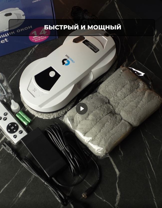 Комплектация: 14 или 26 сменных микрофибровых салфеток, адаптер питания с удлинителем на 4 метра, пульт управления, кольца для крепления салфеток и подробная инструкция.